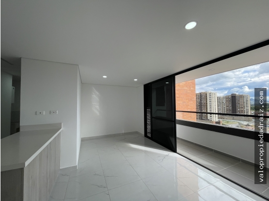 Apartamento para la venta en San Antonio de Pereira, de 75 mts2, ocina integral abierta, zona de ropas, salón-comedor, balcón, baño social, 2 alcobas auxiliares con closet, alcoba principal con vestier, baño y balcón, parqueadero cubierto y cuarto útil.